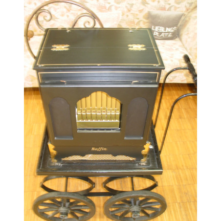 Einzigartige Raffin-Pfeifenorgel Farbe Lack schwarz mit 20 Töne - 40 Pfeifen (31 Holz und 9 zuschaltbare Metallpfeifen), Holzpfeifen in Farbe gold lackiert - Lochband-u. Elektronik-Steuerung Baujahr 1998 - schöner Pfeifenklang. Die Orgel wurde von uns komplett revidiert.